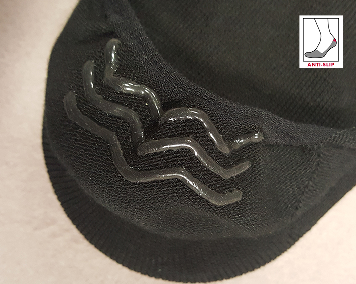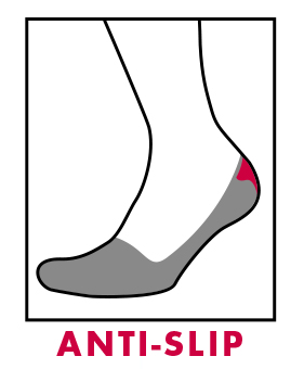 Accollate ma totalmente invisibili all'interno della scarpa, aderiscono perfettamente alla pelle senza scivolare al di sotto del piede grazie al sistema di onde in silicone sul tallone.